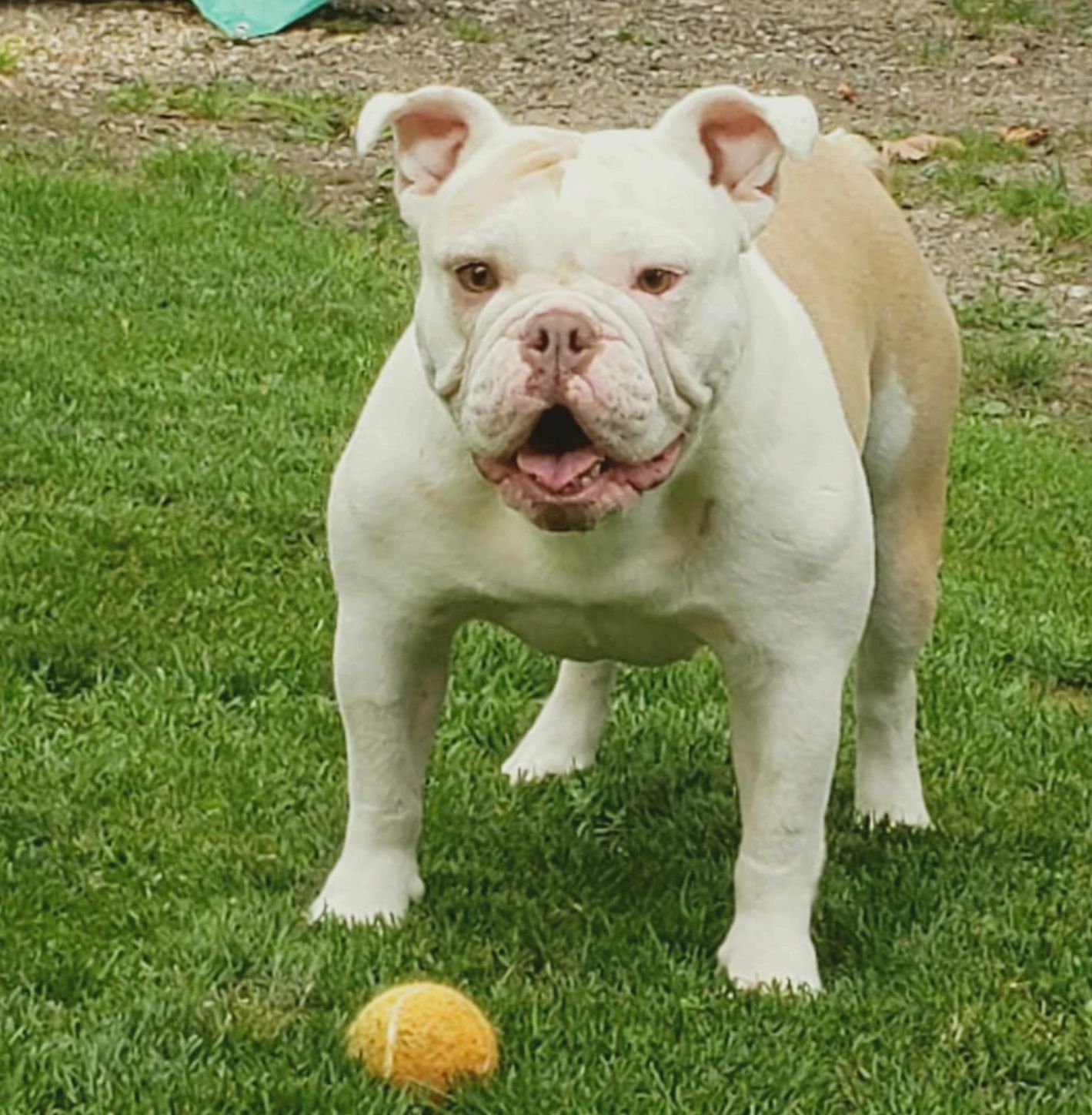 We produced Pablo from within our own breeding program. He is the very best of Baylee Girls litter. He was born in March of 2019. We will be using him in 2020. As soon as he was born it was clear that he was a keeper. Pablo has a huge head. His frame and bones are compact and thick, thick, thick! He has straight legs and a short back. Pablo's eyes are a beautiful blue green and he'll melt your heart as he's staring at you with adoration. With those nice floppy jowls you know he's a sloppy kisser! He's more than we had hoped for in a stud. He is CKC registered and his pedigree is also phenomenal. He counts as his father, Mr Banks and his grandfather Grand Champion King Mason. We can't wait to see what he will produce for us. Stay tuned!